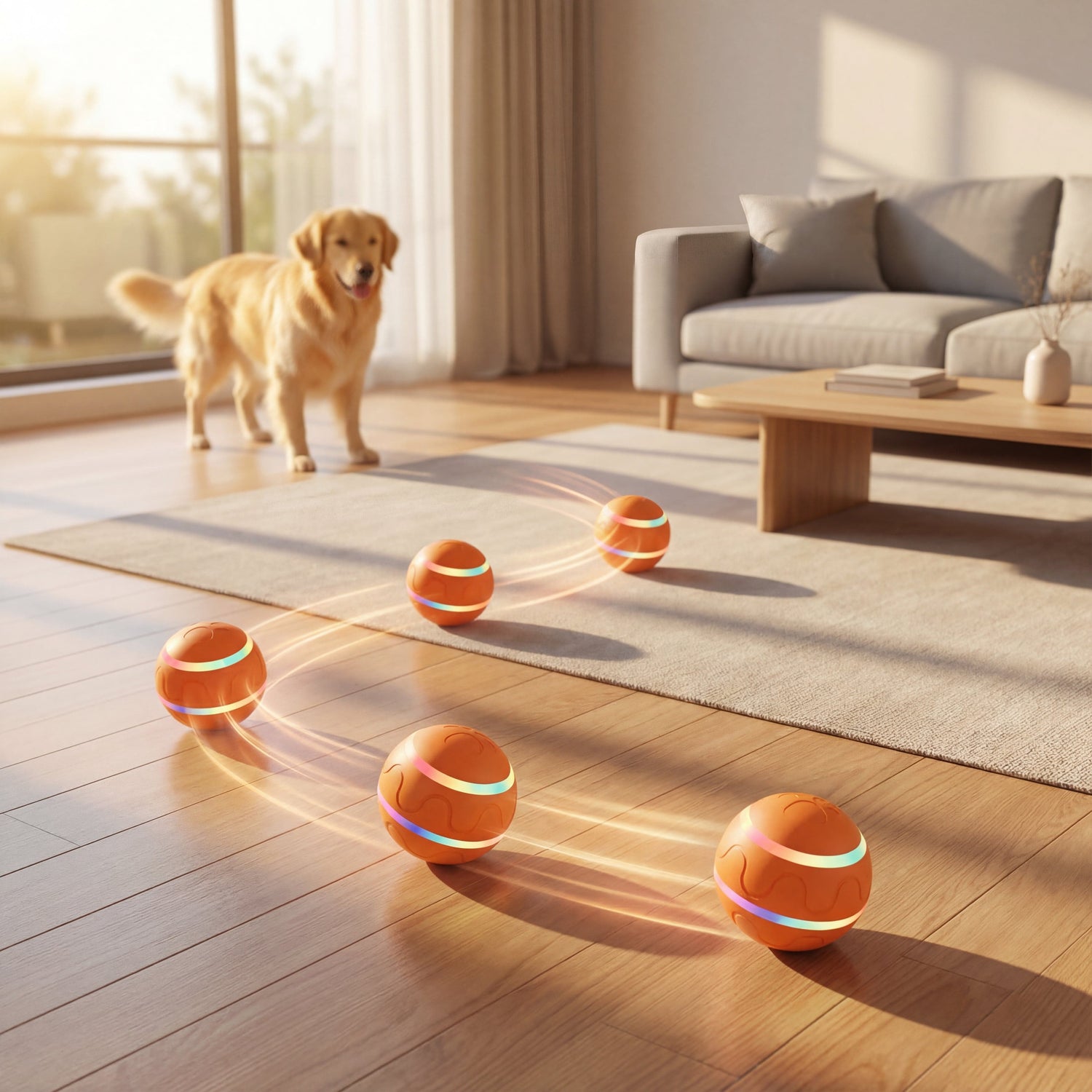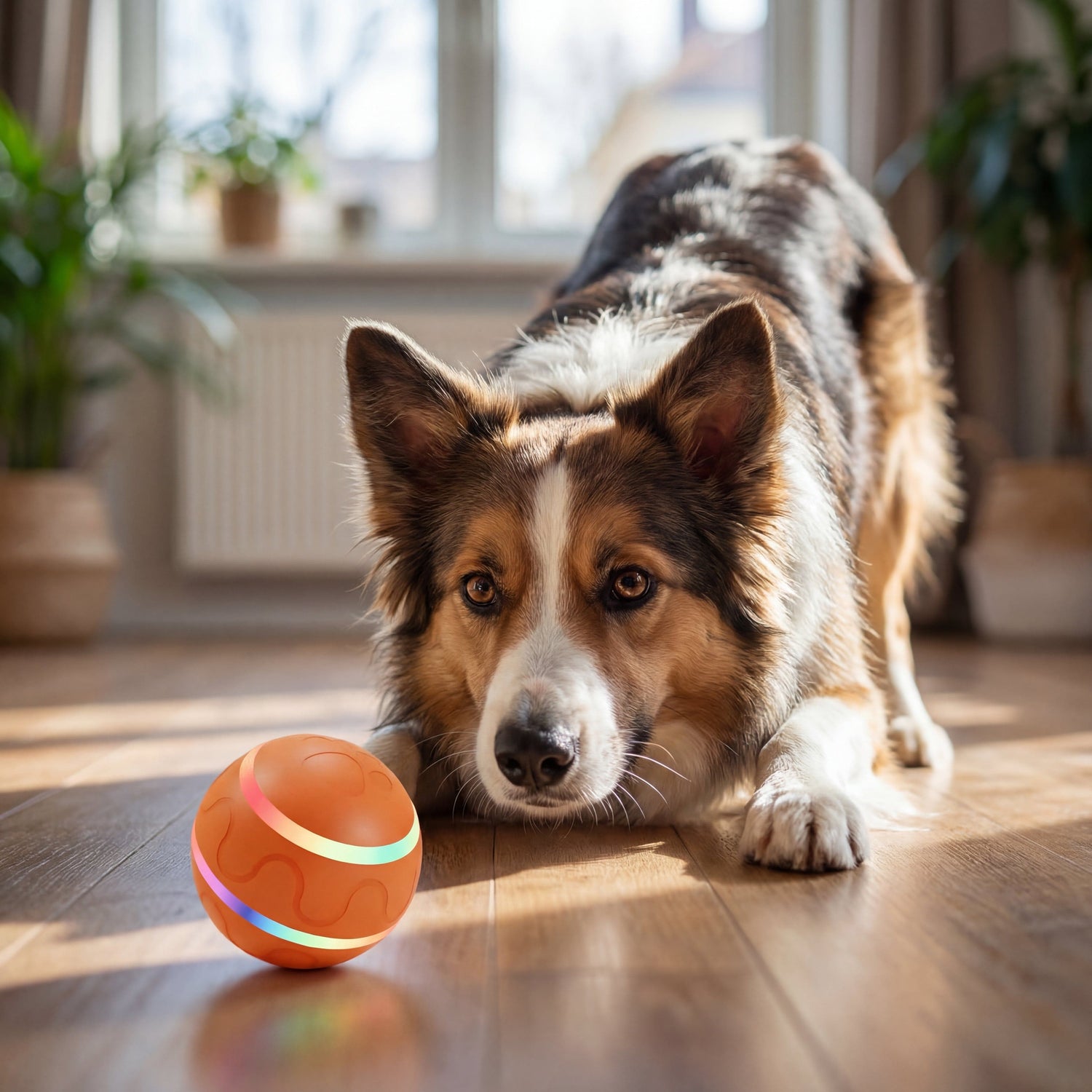 The ball rolls erratically, pauses, changes direction, "escapes" when touched. Your dog tracks it, chases it, catches it — and when it starts moving again, the whole cycle resets. Each part of this sequence triggers dopamine release, making engagement self-sustaining.